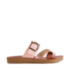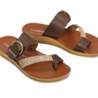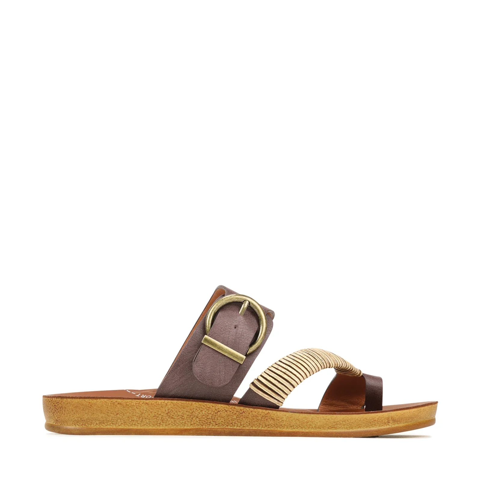 Designed to capture the carefree spirit of summer, Bria combines effortless style with artisan-inspired details. The easy slip-on silhouette is elevated by a toe strap wrapped in natural woven bamboo, adding a subtle, earthy texture. A vintage-style round buckle on the back strap lends a touch of old-world charm—like a hidden treasure waiting to be discovered. Finished with graffiato texturing across the upper, this sandal offers a unique surface relief that feels both handcrafted and contemporary.