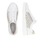 Step into a new level of comfort with these stunning white Remonte low-top sneakers, crafted from premium smooth leather that radiates effortless style.
