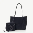 Internal Features: Lined in matching matt PU. An exquisite mini cross body bag with rounded flap closure is inside the larger tote. This bag has matching tubular handles.