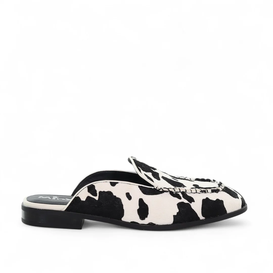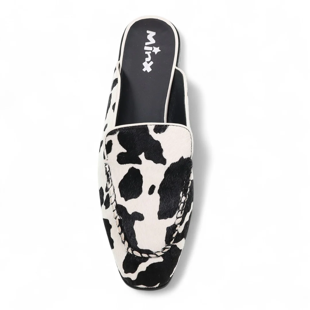 Grayson is our backless take on the Greer, a high-fashion flat mule crafted in animal-print pony leather. Available in black-and-white or tan-and-white, no two prints are the same, making every pair one-of-a-kind. The apron-stitched front adds subtle detail, while the versatile design makes Grayson a transeasonal style — perfect with linen separates, long-line silhouettes, or workwear looks from summer-to-autumn.