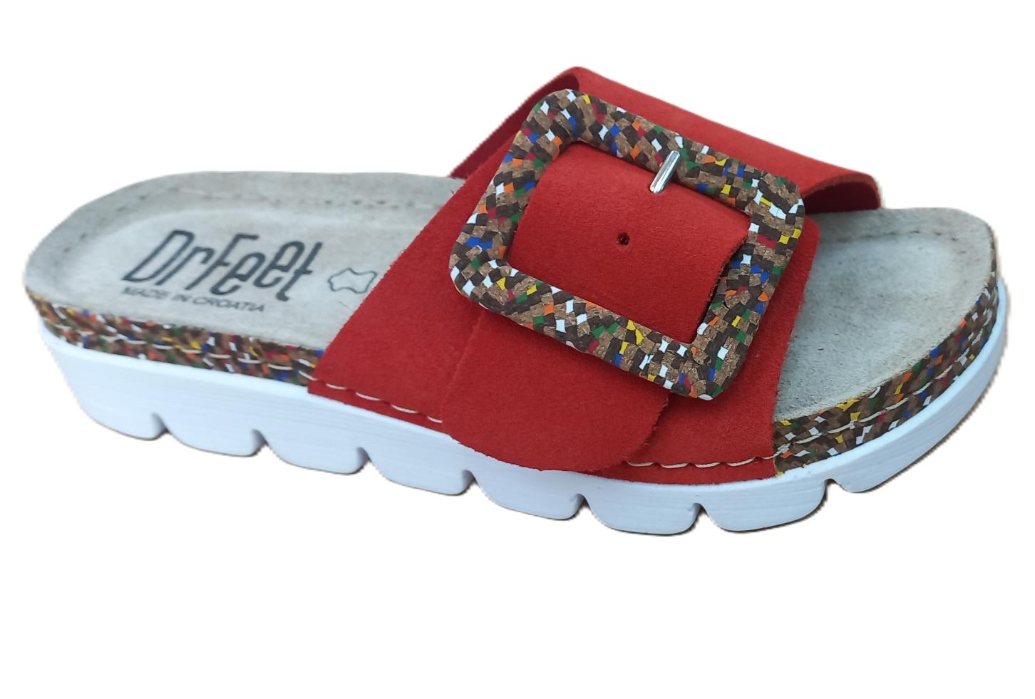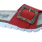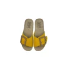 Playful, bold, and incredibly comfortable – Hiro is a sandal that makes every step feel like freedom. Made in Croatia, this slide features soft suede straps with oversized multicoloured buckles, finished with a chunky white sole for modern comfort and support. Whether you choose the sunshine yellow or brick red, Hiro is designed to brighten your day while looking after your feet. Wider fit with adjustable strap.