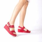 Red shiny leather sandals. The Purple sandals have a multi-strap decoration on the instep, a guaranteed hold thanks to a slim strap that surrounds the ankle, it also has a platform that makes it very comfortable. The sole is developed with the WondersFly™ technology that brings an extreme lightness to the model, that you will not want to take off!