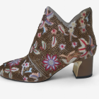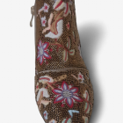 Make a bold statement with these stunning bronze boots. With delicate beading, these eye catching boots feature multi coloured floral embroidery which adds texture and sparkle. Featuring side zip.