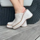 Introducing Roselle, a striking new mule in the iconic Tokyo sole lineup. This toe-in style offers beautiful depth through the front. Designed to dazzle, Roselle is expertly crafted in high-shine patent leather and features a meticulously hand-woven design that flows seamlessly from the upper, wrapping the entire platform sole in textural brilliance. Bold yet refined, this sculptural silhouette brings a fresh, high-fashion energy to your trans-seasonal wardrobe.