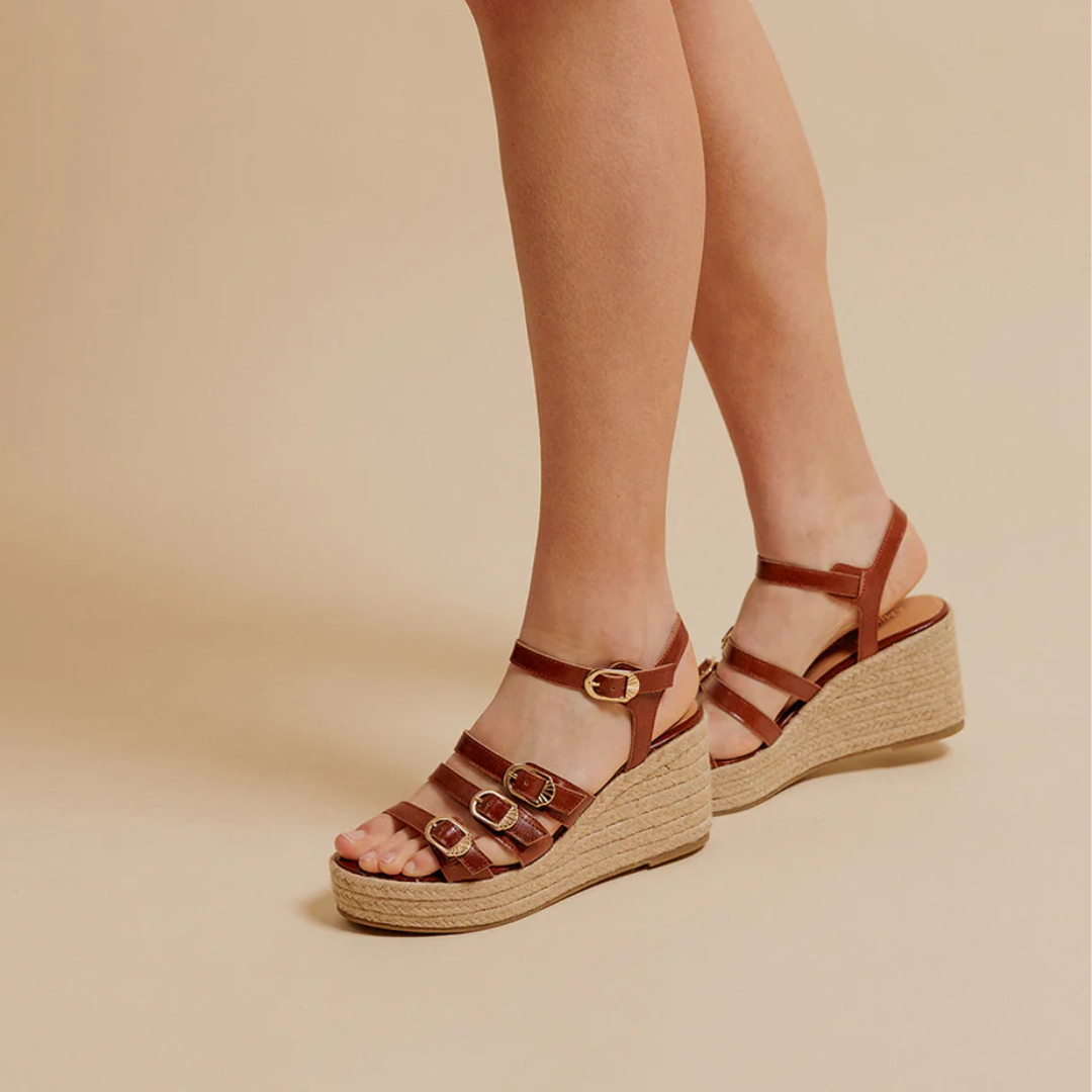 Step into effortless elegance with these espadrille-style leather wedge sandals, featuring adjustable multi-straps and a secure ankle strap closure. Expertly crafted with 100% leather on the outer, lining, and insole, they combine luxurious materials with everyday comfort. Designed in France and made in China, this chic pair boasts an 8 cm heel and a 3 cm front platform—perfect for adding height without sacrificing stability.