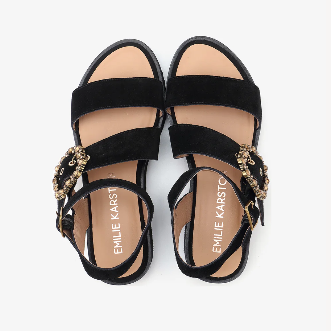 Elevate your look with this sophisticated sandal featuring a closure system with an adjustable ankle strap, adorned with a stylish gold-finish pin buckle for added elegance. Crafted with premium 100% leather for the outer, lining, and insole, it offers both luxury and comfort. Designed in France and made in China, this piece stands out with a 4 cm heel and a 2 cm platform, striking the perfect balance between style and wearability.